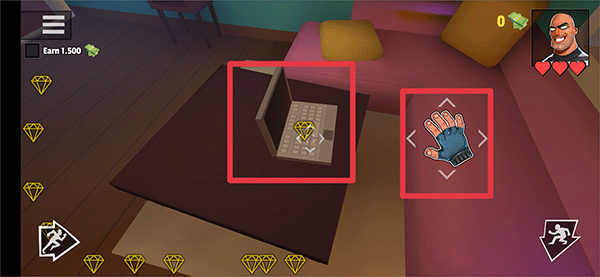 5、之后就可以进入房间啦,在房间内将带有钻石标记的物品拾取后,在右上角会显示你偷窃的金额