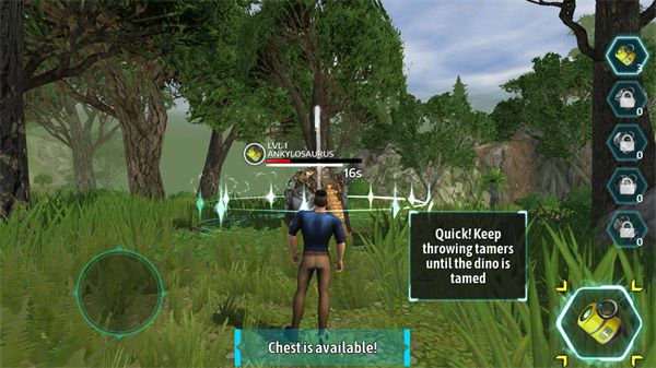 3、等靠近恐龙时就可以丢出驯服的设备;