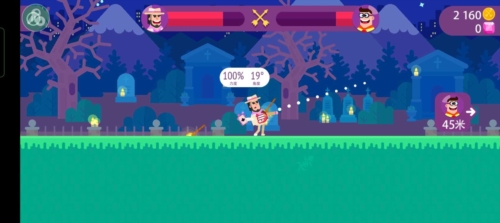 游戏最考验玩家的地方就在操作方式上,想要精确的射中对方绝对不是一件易事。玩家需要上下滑动屏幕来调整射击角度,接着还要向后方滑动进行力度的调节。让人感到庆幸的是,每一次调整屏幕上都会显示出角度和力度的数值,玩家可根据这些数值在后面的射击中逐渐进行纠正,直到射中对方。而且,由于射击部位的不同也会产生不一样的伤害效果,直接爆头是最有效的一种攻击方式。