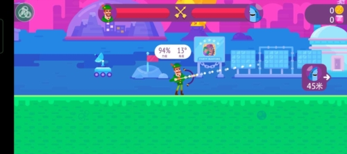 刚开始很多人玩的时候会觉得这游戏是靠运气,其实完全不是,聪明的小伙伴会在第一次射箭时记下角度和射出的位置,调整角度和力度是关键,而且在对手被击中后会往后移一段位置,记得把角度也调一下哦,掌握了规律后你就会变成一个神射手,百发百中,我已经成功了。