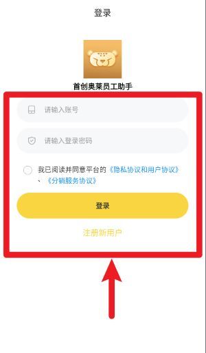 1、启动首创奥莱员工助手后,首先点击底部的“注册新用户”按钮,根据提示输入账号和密码,完成账号的创建。