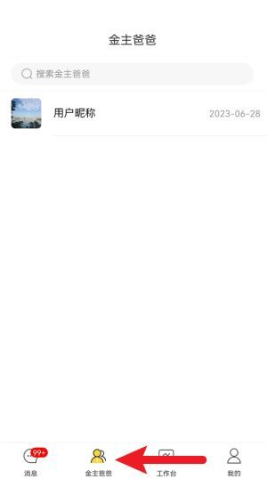 2、进入主页面后,点击底部菜单栏里的“金主爸爸”图标,即可查看客户信息和联系记录。