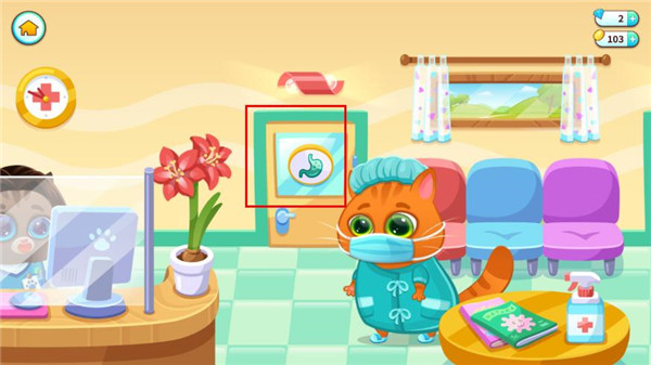 1、当bubu生病时,会持续显示肚子疼的提示,点击后可以前往诊所。