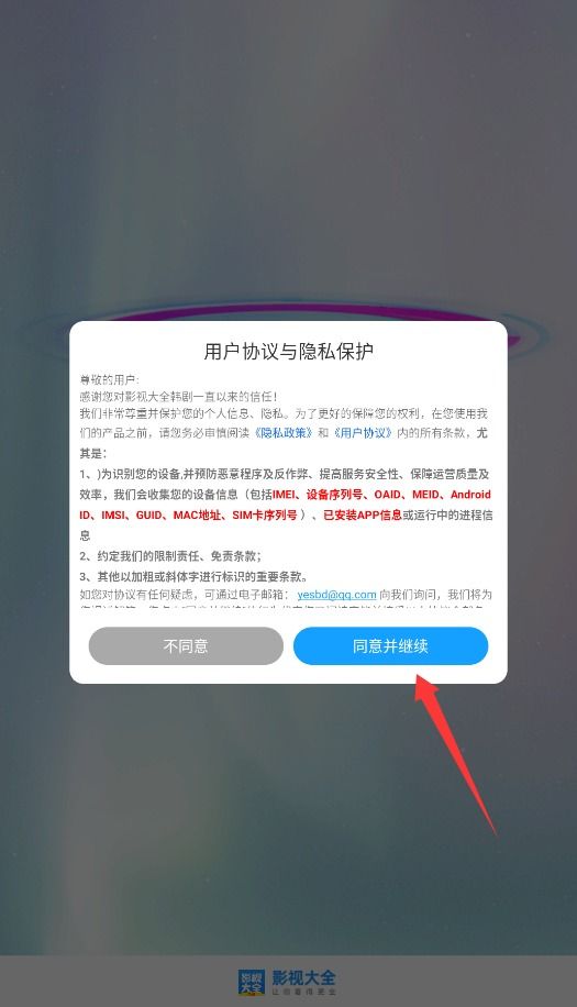 1、初次使用时,系统会显示用户协议与隐私政策,仔细阅读后点击同意并继续进入。