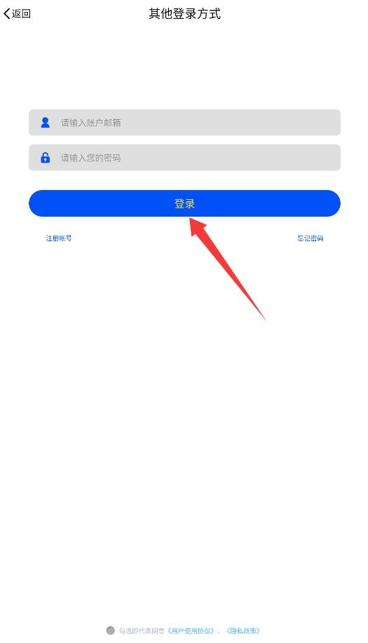 2、在账号登录界面输入账号邮箱及对应密码,勾选同意用户协议后点击登录按钮完成认证。