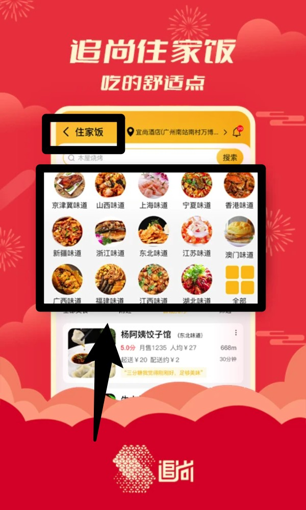 3. 进入“住家饭”页面,根据地域口味分类点选菜品,享受地道家常菜配送服务。