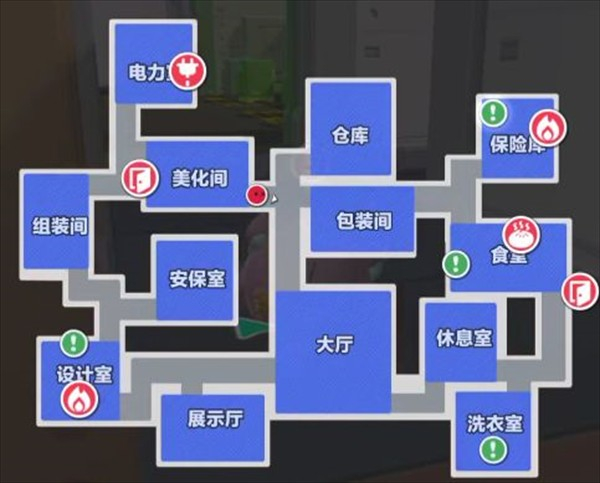 我们可以关闭美化间(封闭了美化间到电力室通道)和食堂(封闭了食堂通往大厅的通道)的门,关闭后20秒内,任何蛋仔无法从此出入,20秒后门会自动打开(并且坏蛋可以隔门刀人)我们可以看到,在食堂的门那里,有蛋仔的身影,并且击倒按钮亮起