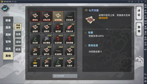 果然是民间药材,这个在游戏中基本上是用不到的,从我的药品数量就能看得出来,几乎要破千了,少许的生命,仅仅移除一个负面,CD冷却却达到了4个回合,估计也就只有江湖郎中用这个了吧。