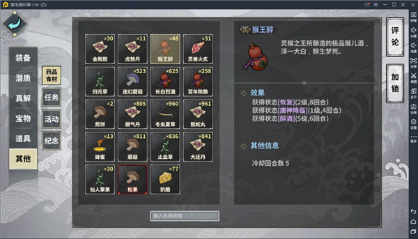 长白七八层出品的这种药物让我感到困惑。它属于酒类,具有恢复效果,但实际上用处不大。在遇到假酒的情况下,即使有2级恢复也可能被轻易击败。不过,它的优点在于恢复效果持续时间较长。与魔神降临相比,它甚至不如百年陈酿。这个药品的独特之处在于,它是三种酒类中唯一能够提高非1级醉酒加成的药物。5级醉酒状态可以增加连击的概率,但我觉得这有些浪费,因为醉酒状态下,通常不会在六个回合内充分利用连击输出。要打出连击,还需要装备心决功法作为支持。单靠5级醉酒来实现连击几乎都会失败。在我看来,在PVE中喝酒以增加连击更多是起到补充作用。在进入副本前,如果连击能力不足,喝点酒使连击概率达到及格线即可,而这一目标一般1级醉酒就能满足。需要注意的是,醉酒变成假酒的概率与醉酒等级无关,但我总觉得服用这种药时更容易感到晕眩……从我使用这种药和其他药品的数量对比中就可以看出这一点。