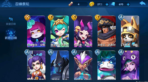 2、联盟召唤消耗金币,可召唤出低级符石,较普通的英雄及英雄碎片